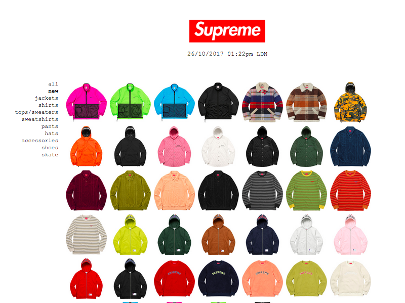 10月26日UK SUPREME ONLINE STORE UPDATED!(サイズチャートあり)
