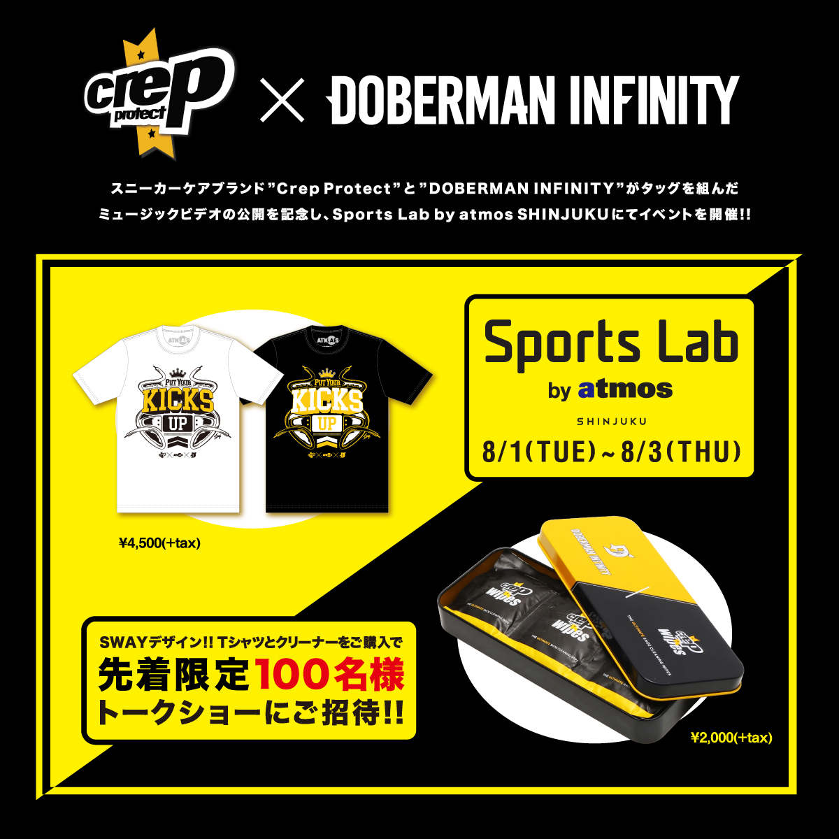 Protect」と日本が誇るHIPHOPグループ“DOBERMAN INFINITY”のコラボレーションミュージックビデオ『Put Your Kicks UP』発表を記念したスペシャルなイベントを2017年8月3日(木)に